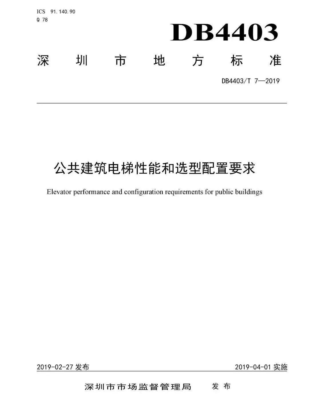 电梯品牌众多且主要在国内其他地区或国外生产制造,电梯选配和使用状况复杂,这是深圳电梯面临的现状。为提高公众聚集场所、政府投资建筑、公共租赁住房等公共建筑电梯产品质量,深圳市市场监管局市特种设备安全检验研究院牵头制定了深圳市地方标准《公共建筑电梯性能和选型配置要求》(DB4403/T 7-2019)(下文简称“标准”)。目前,该标准已正式发布,并将于2019年4月1日起实施。